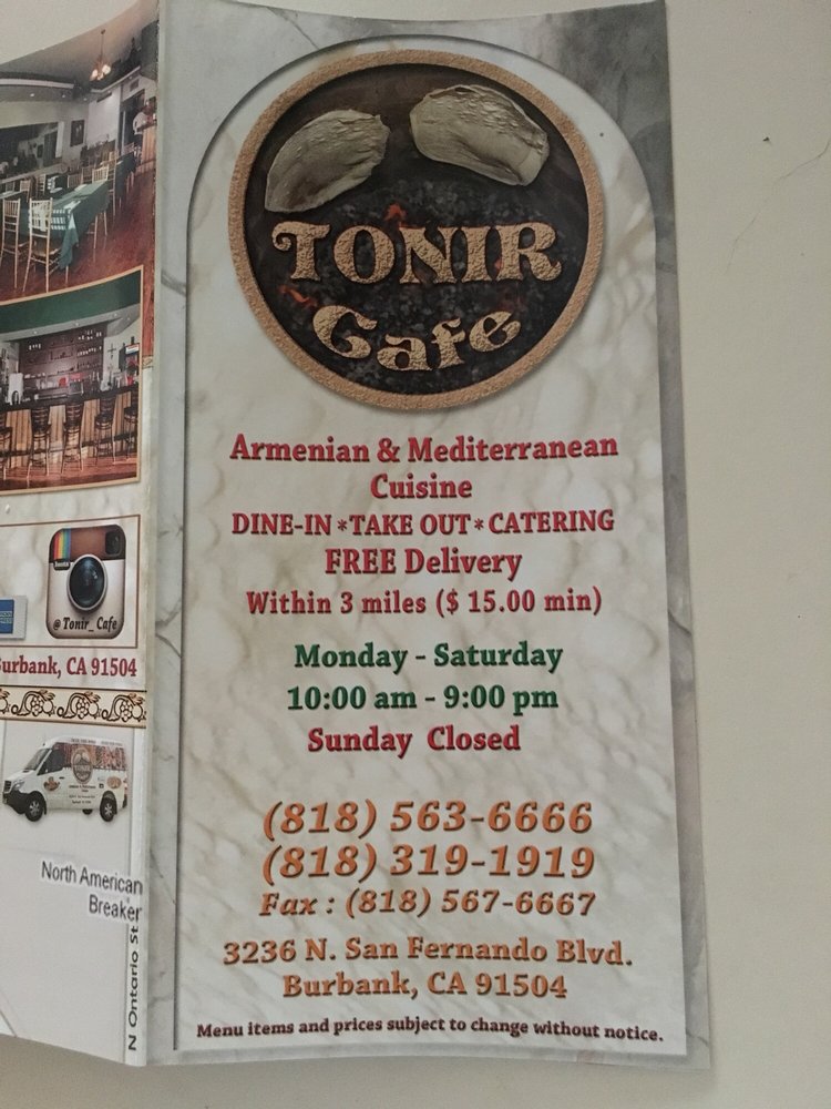 Welcome to Tonir Cafe, a hidden gem nestled in Burbank, CA. This women's-owned eatery embraces the rich tradition of Mediterranean cuisine, specializing in mouthwatering skewers and kabobs that promise to delight your taste buds. The menu features an array of options, from juicy Chicken Lule and Beef Shish Kabob skewers to succulent Pork Ribs prepared Armenian style. Each dish is crafted with care, ensuring generous portions and authentic flavors.